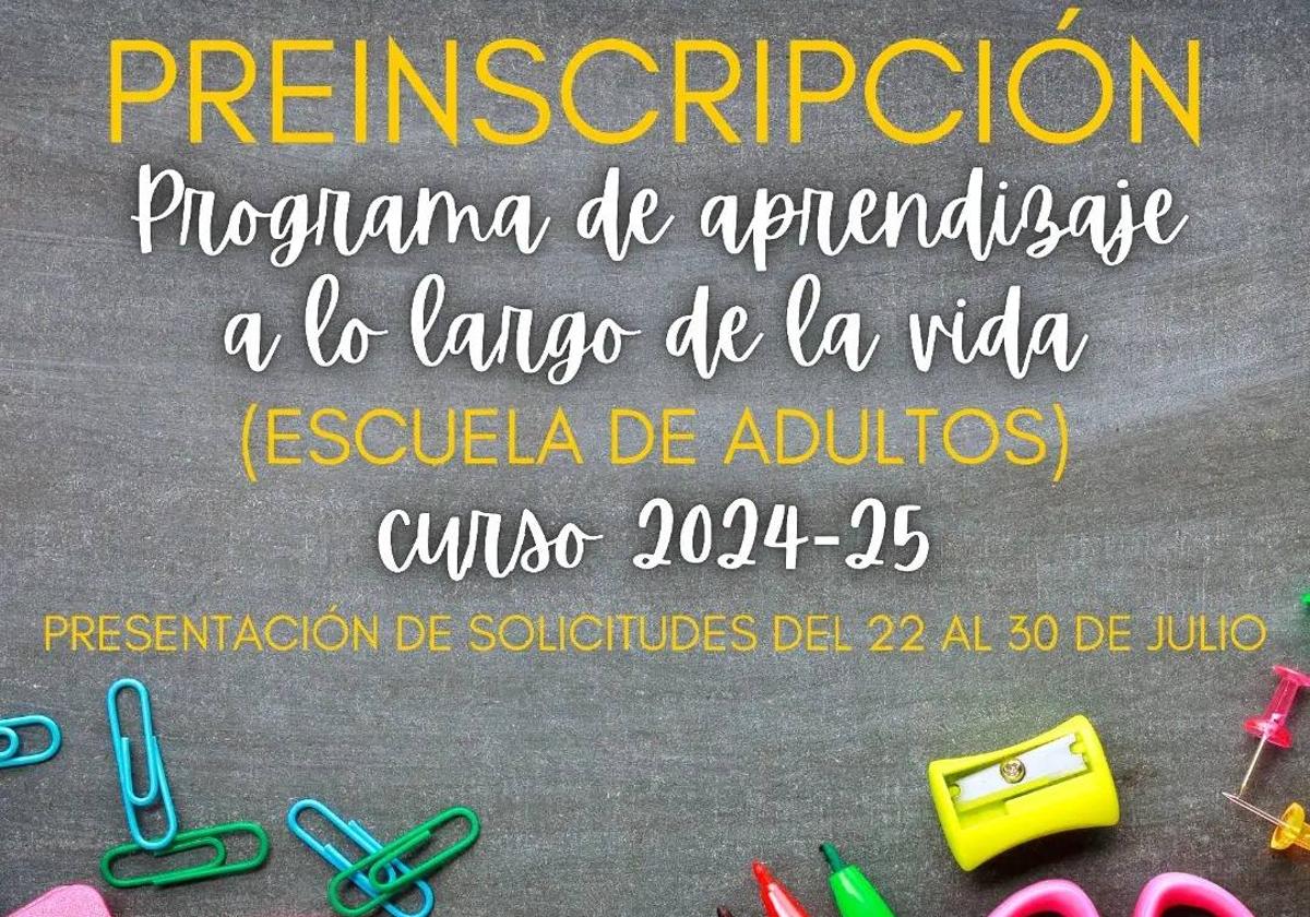 El Ayuntamiento abre el plazo de solicitud de admisión para el Programa de 'Aprendizaje a lo largo de la vida' (Escuela de adultos).
