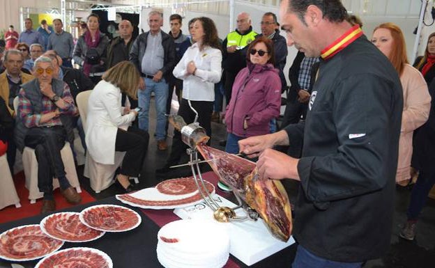 La exhibición que se llevó a cabo en la carpa central fue seguida del corte y posterior venta de jamón en un stand exterior, a favor de los usuarios de Aprosuba 14 Plena Inclusión Olivenza.