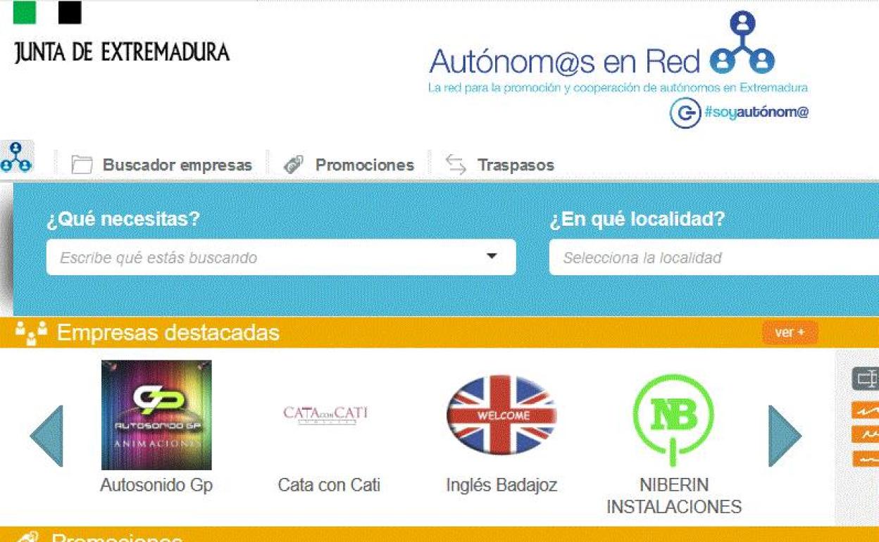La Dirección General de Empresa contribuye a la recuperación de negocios de profesionales autónomos en Extremadura en el nuevo escenario poscoronavirus a través de la ... plataforma «Autónomos en Red», un espacio virtual que actúa a modo de escaparate gratuito dónde los profesionales por cuenta propia de la región pueden promocionar sus negocios a través del diseño y difusión de ofertas de sus productos y servicios.
