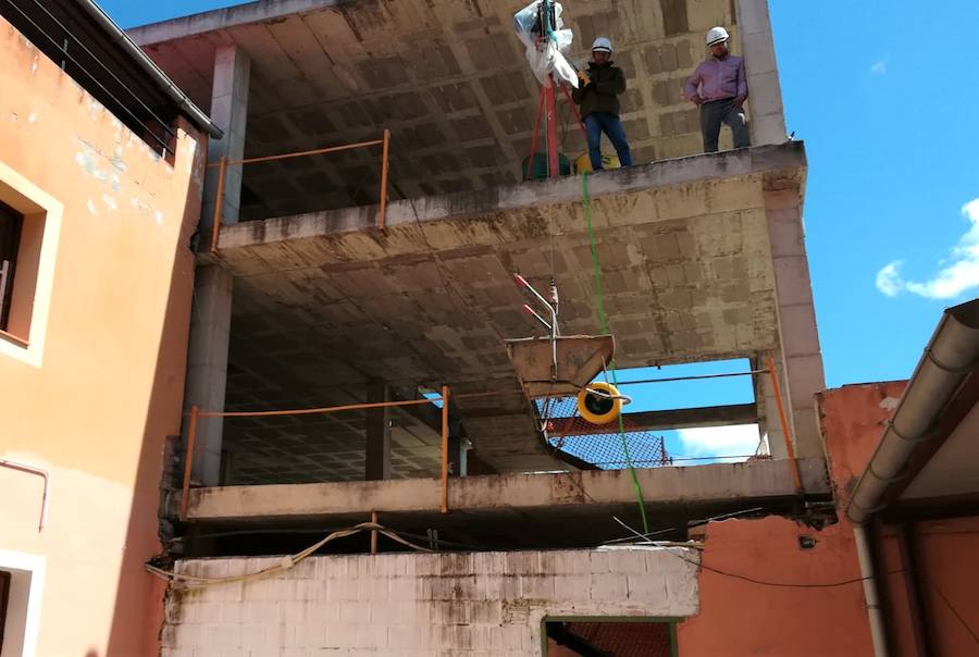 La pasada semana han comenzado las labores de descarga del material necesario con el que se llevará a cabo la primera fase de la nueva obra, con un presupuesto de 100.000 euros, con la que se realizará el cerramiento de todo el edificio