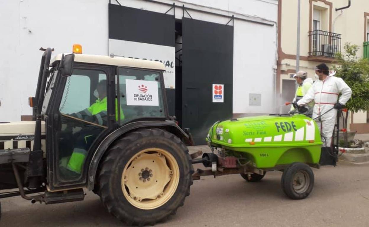 El Ayuntamiento contó con la colaboración de la Diputación de Badajoz en la desinfección diaria