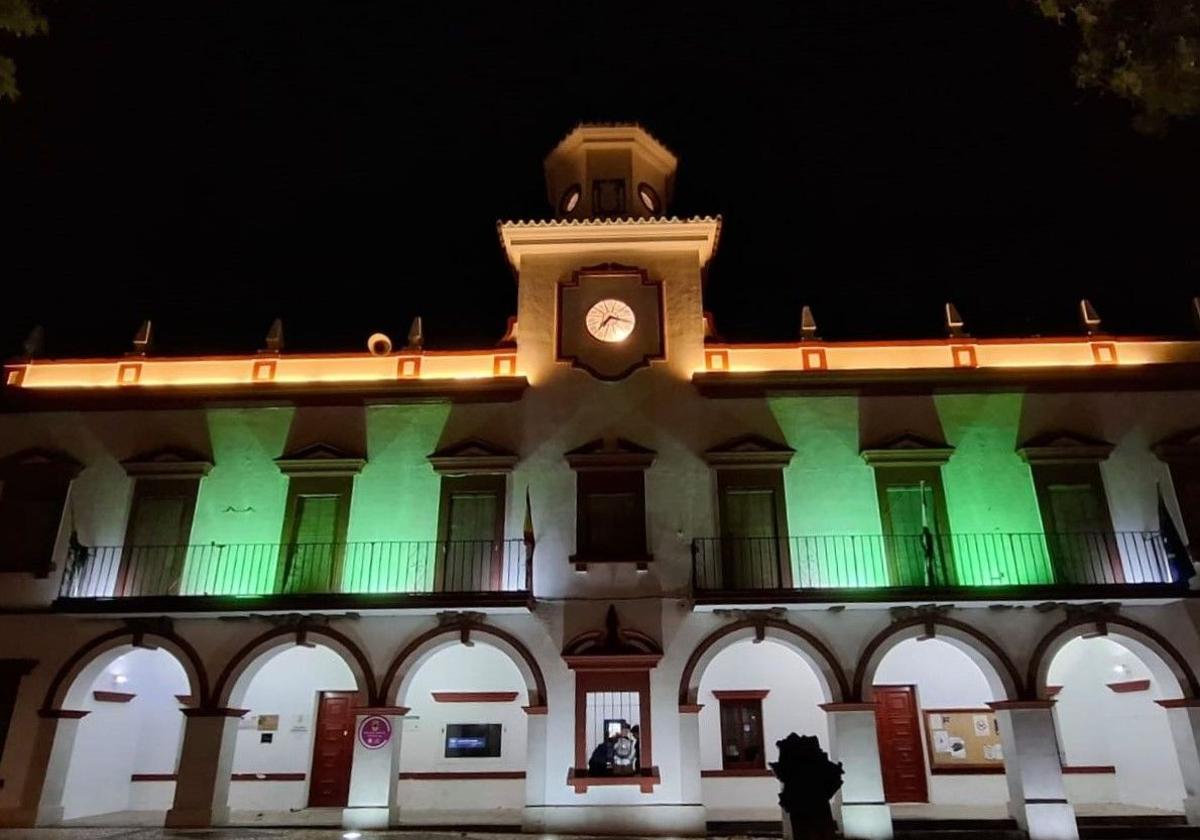 El Ayuntamiento se iluminó de verde para felicitar a la Guardia Civil por su patrona