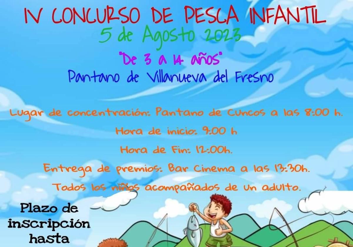 Los niños y niñas de entre 3 a 14 años, ambos incluidos, podrán participar en el IV Concurso de Pesca Infantil organizado por la Sociedad Deportiva 'Alcarrache', de Villanueva del Fresno, en colaboración con el Ayuntamiento.