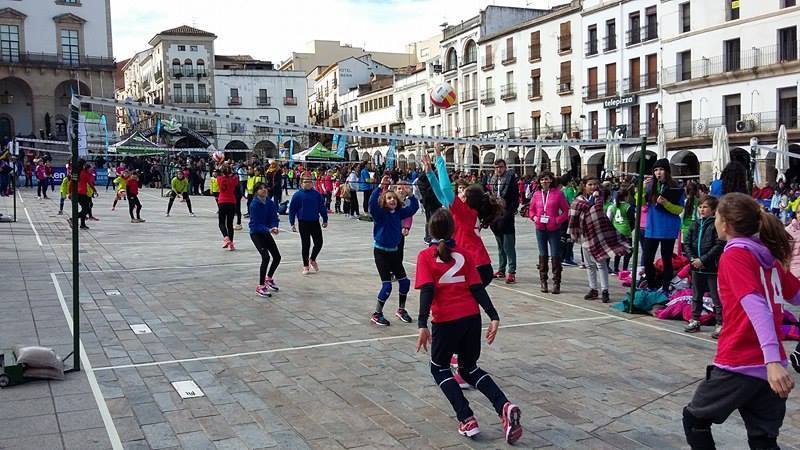 Los equipos participantes se concentraron en la Plaza Mayor de Cáceres donde se encontraban instaladas 17 pistas de minivoley, en ellas desde las 11.00h y hasta las 14.00h, se disputaron los más de 100 partidos celebrados entre los casi 100 equipos presentes.