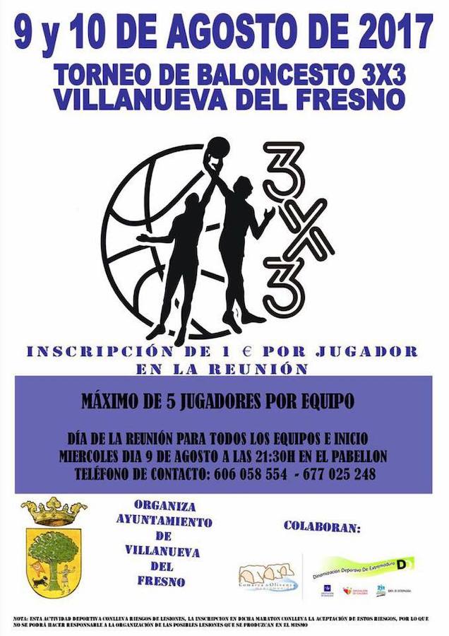 Dentro de la programación deportiva veraniega, organizada por el Ayuntamiento de la localidad a través de la concejalía de Deportes, se llevará a cabo el Torneo de Baloncesto 3x3 'Villanueva del Fresno' los días 9 y 10 de agosto