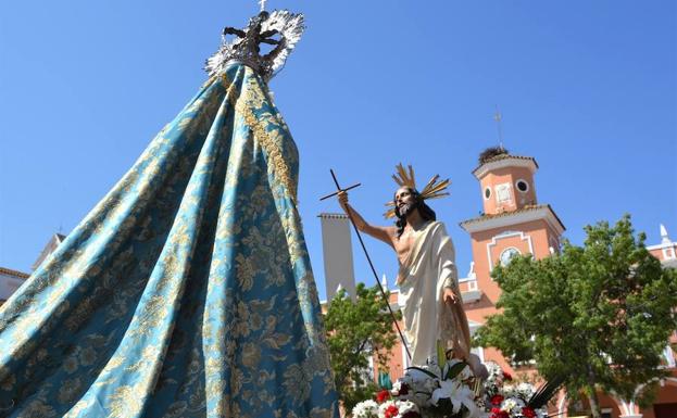 La plaza de España se llenó de fieles en la mañana del pasado 21 de abril, domingo de Resurrección. Desde la Iglesia de la Purísima ... Concepción partieron por puertas diferentes las tallas del Señor Resucitado y la Virgen (del Rosario o Santa María de las Flores) aún por determinar. Ambas acompañadas por un nutrido grupo de fieles, mayoritariamente hombres con el Señor y mujeres con la Virgen, junto a la banda municipal de Música.