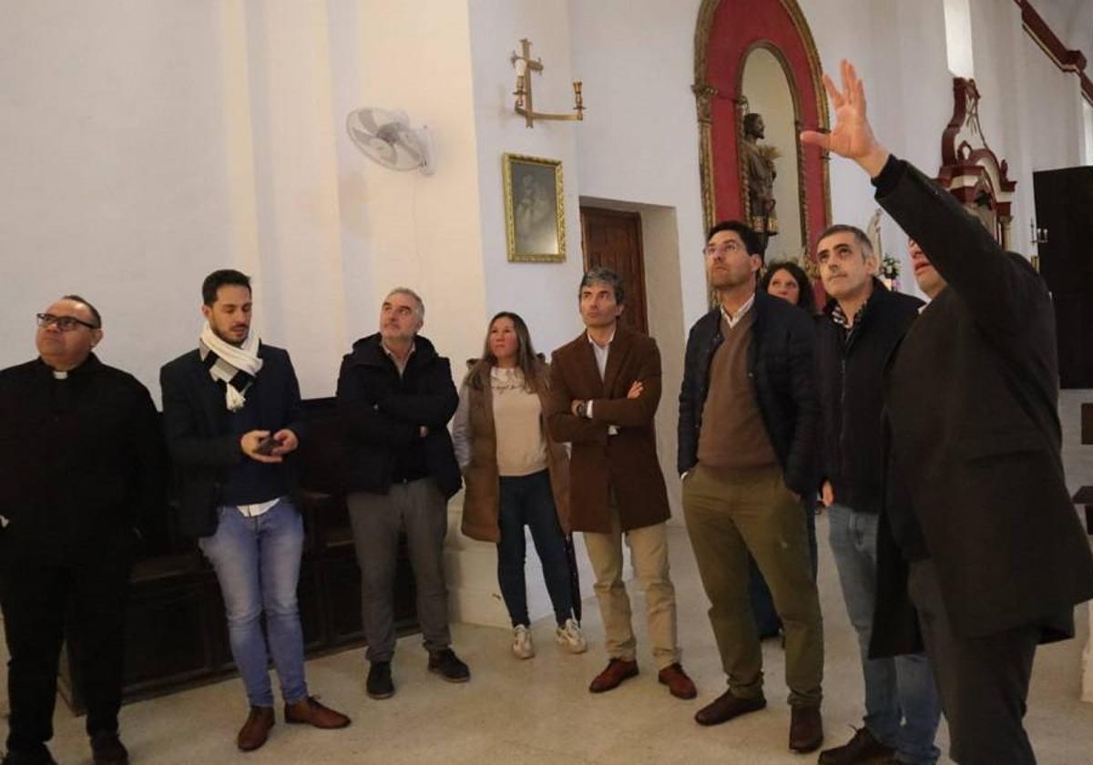 Los diputados Abel González, y Ramón Díaz Farias (a su vez regidor local) el director, José Carlos Cobos, y el representante del Arzobispado de Mérida-Badajoz, Julián Peña, junto al párroco D. Rubén Reina, visitaron el retablo