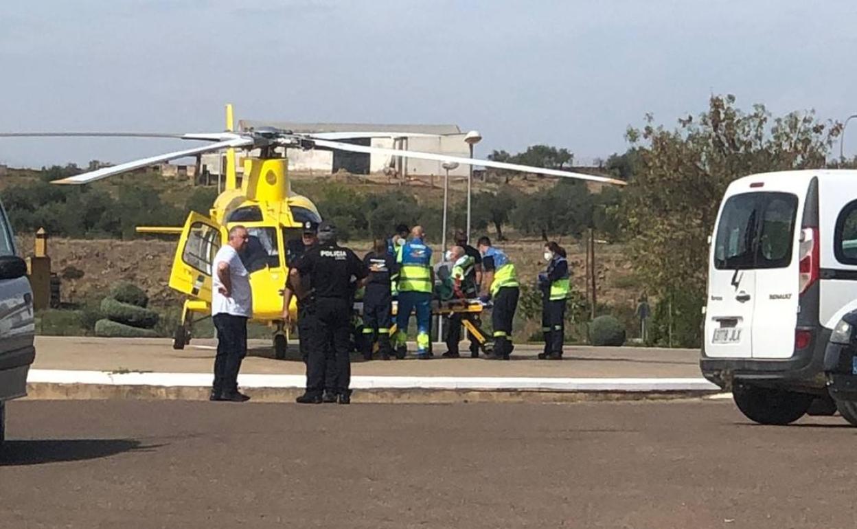 El paciente fue evacuado sobre las tres del mediodía en un helicóptero medicalizado con base en Don Benito, perteneciente al Centro de Urgencias y Emergencias 112 Extremadura.
