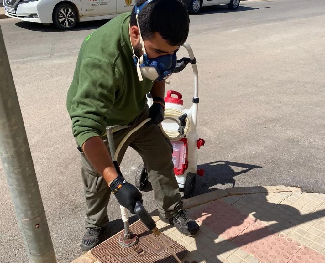 Se intensifica la fumigación para el tratamiento de plagas de cara al verano, de esta forma, este martes 11 de junio los técnicos operarios de la empresa Andasur están realizando tareas de tratamiento para la extinción de cucarachas y otros insectos en Villanueva del Fresno.