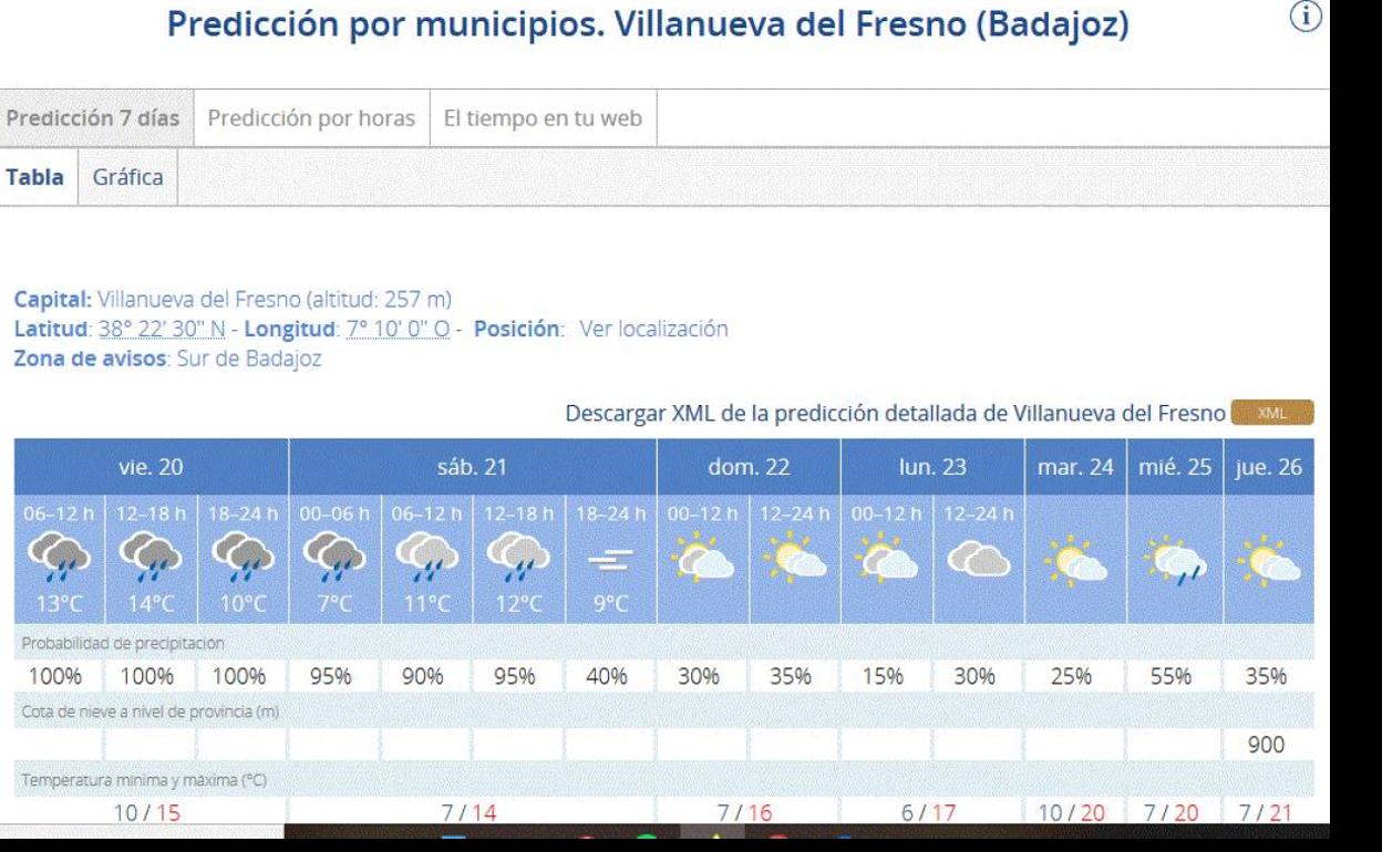 Cabe añadir que, casi toda la comunidad autónoma de Extremadura permanecerá este viernes, 20 de marzo, en aviso amarillo ante el riesgo de fuertes lluvias, de las que solamente se salvarán las comarcas de Montánchez y Villuercas y la Siberia extremeña.