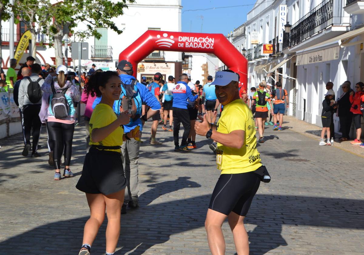 La plaza de España volvió a amanecer con dos vistosos arcos hinchables y diversas carpas de reparto de dorsales para dar el pistoletazo de salida al VIII Trail Rayano Solidario de Naturaleza de Villanueva del Fresno.