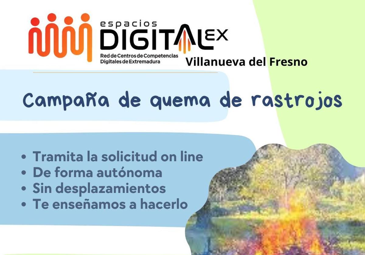 El Centro de Competencia Digitales NCC, de Villanueva del Fresno, ahora Espacios Digitalex englobado en la Red de Centros de Extremadura enseña a tramitar el permiso de la quema de rastrojos.