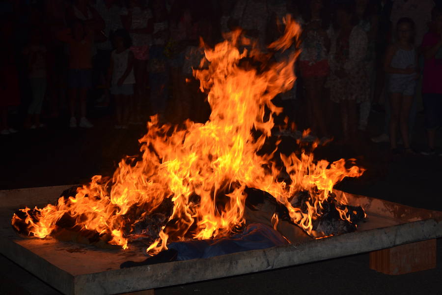 Una pareja de Juanes perteneciente a la categoría de adultos, otra de juveniles y otra de infantiles, todos ellos ganadores del concurso, ardieron en la hoguera de San Juan con la que se quema 'todo lo malo del año' y se da la bienvenida al verano