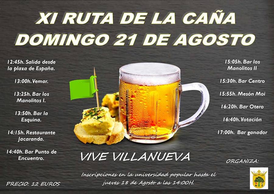 El precio de la XI Ruta de las cañas será de 12 euros y el plazo de inscripción finaliza el próximo jueves 18 de agosto en la Universidad Popular de 10.00 a 14.00h.