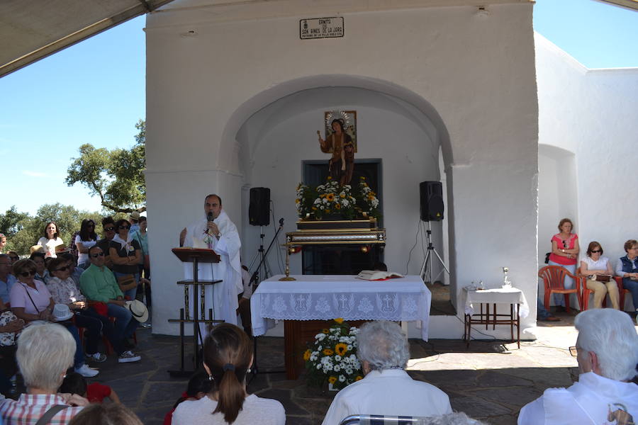 El porche de la ermita del Patrón fue el lugar donde se desarrolló la Santa Misa ante un numeroso grupo de fieles, en la que participaron el grupo de coros y danzas 'Hojarasca' de Oliva de la Frontera, los cuales pusieron la nota folclórica a la misma. La procesión se desarrolló a continuación discurriendo alrededor de la ermita y tras cuya finalización se procedió a la degustación de la típica sangría de la que la hermandad repartió unos 30 litros.