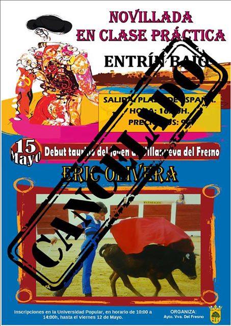 El joven villanovense Eric Olivera, alumno de la Escuela Taurina del Patronato de Tauromaquia de la Diputación Provincial de Badajoz, realizará su debut taurino el sábado 20 de mayo en La Albuera, en vez del día 15 de mayo en Entrín Bajo como se había programado en un principio. El Ayuntamiento mantiene un autobús para asistir a dicho evento.