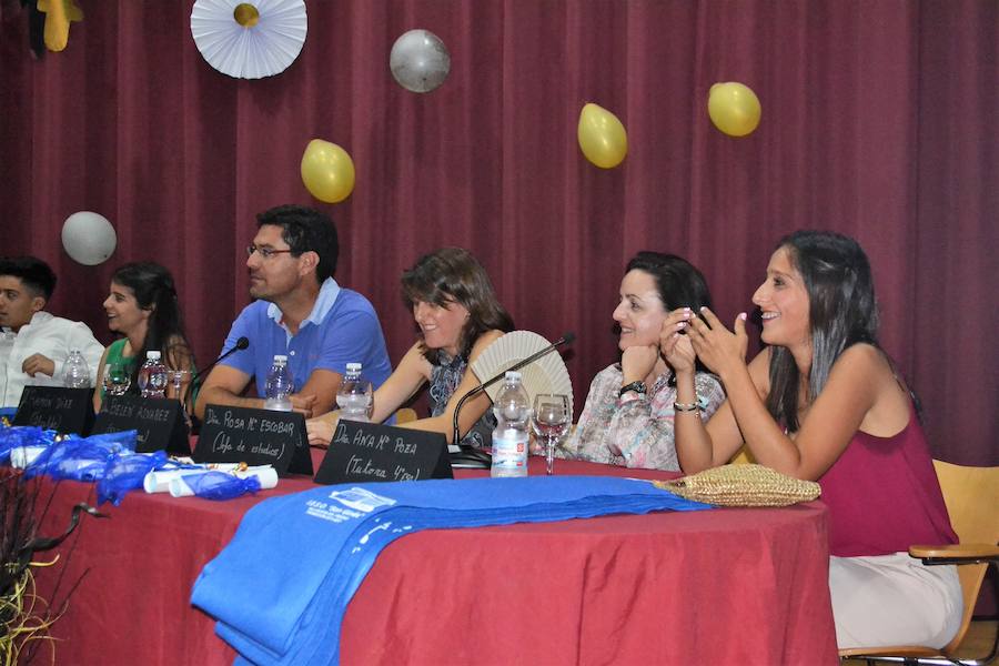 Los alumnos recibieron los diplomas, bandas y becas pertinentes y tras finalizar la ceremonia, los padres, profesores y alumnos compartieron un aperitivo de convivencia en el antiguo bar de los mayores.