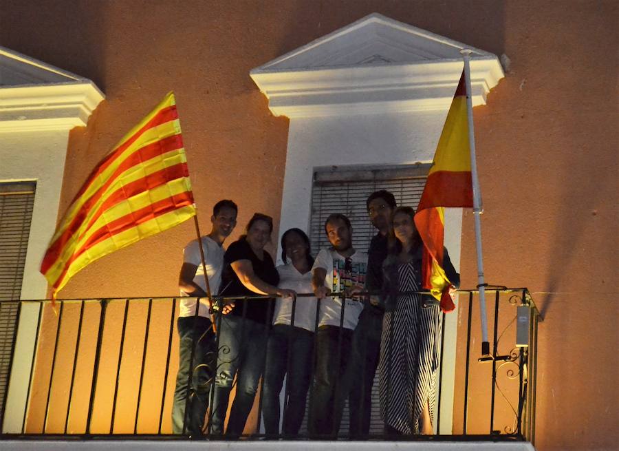 El balcón del Ayuntamiento acoge la señera (bandera de Cataluña) en señal de apoyo al pueblo catalán y a los alcaldes no independentistas.