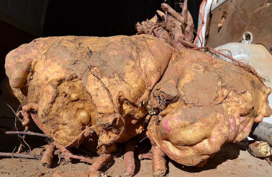 El último boniato gigante registrado en la prensa digital es del año 2014 y fue recogido por Pedro Moreno, un agricultor de 80 años de Nerja, Málaga, con un peso de 8.750 kilogramos.
