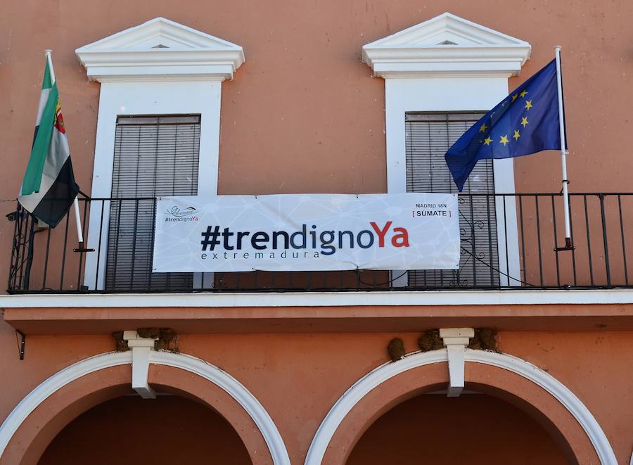 El Ayuntamiento se suma a la reivindicación de un tren digno para Extremadura, para ello ha colgado una pancarta en el balcón del Consistorio en apoyo a la plataforma y fleta un autobús para asistir al '18N por un Tren Digno' en Madrid