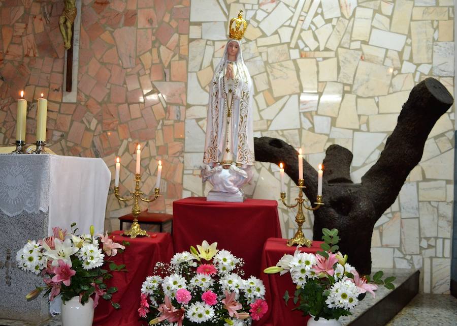 La Virgen de Fátima luce desde el pasado 16 de enero, la corona que se adquirió por suscripción popular en el año 1987 a instancias del párroco de aquella época, Andrés Alonso Trejo, recién restaurada.