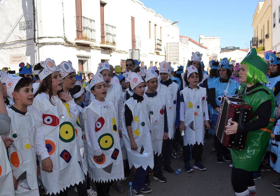 Los usuarios de la guardería municipal y los diferentes alumnos salieron a las 12.30h desde el parque del centro para desfilar por diversas calles del municipio. A su llegada a la plaza de España, los alumnos de 5º y 6º de primaria acompañados al acordeón por la maestra de música interpretaron una canción típica de murga carnavalera en la que, entre otras cosas, reivindicaron reformas en el colegio debido a su antigüedad.