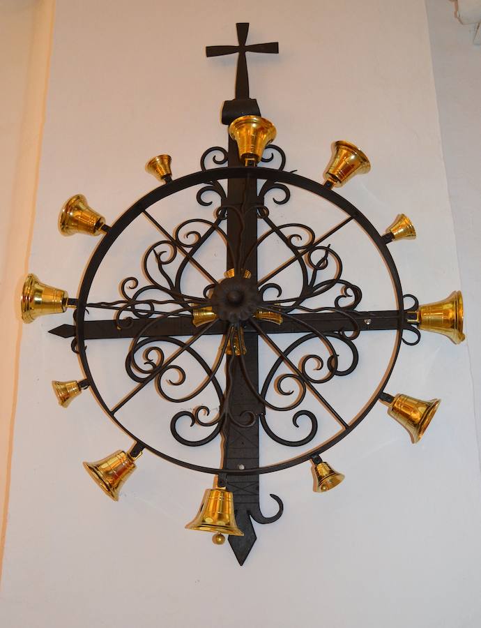 Esta rueda de campanas, está realizada en forja se ha elaborado en la localidad y fue instalada unos días antes de la celebración de la Semana Santa. La rueda ha sido donada por un vecino de la localidad.