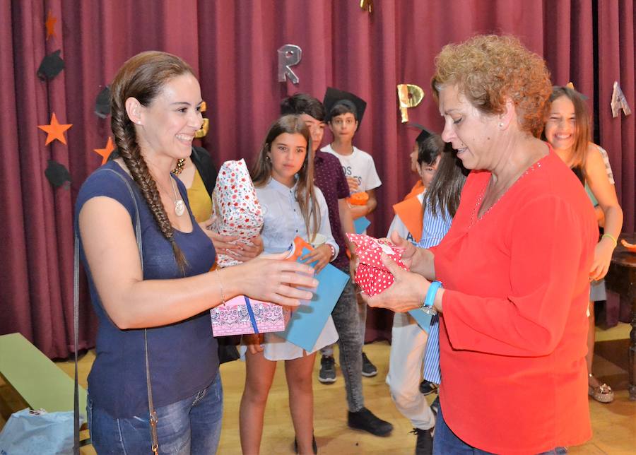 La maestra de religión Aurora Cabanillas, que es la única que ha permanecido durante toda la etapa de seis años de primaria con los alumnos, recibió un pequeño homenaje y varios obsequios de igual manera que ambos tutores. La maestra de inglés, Piedad Píriz, que no pudo asistir al salón de actos, también recibió un detalle de agradecimiento por parte de los alumnos.