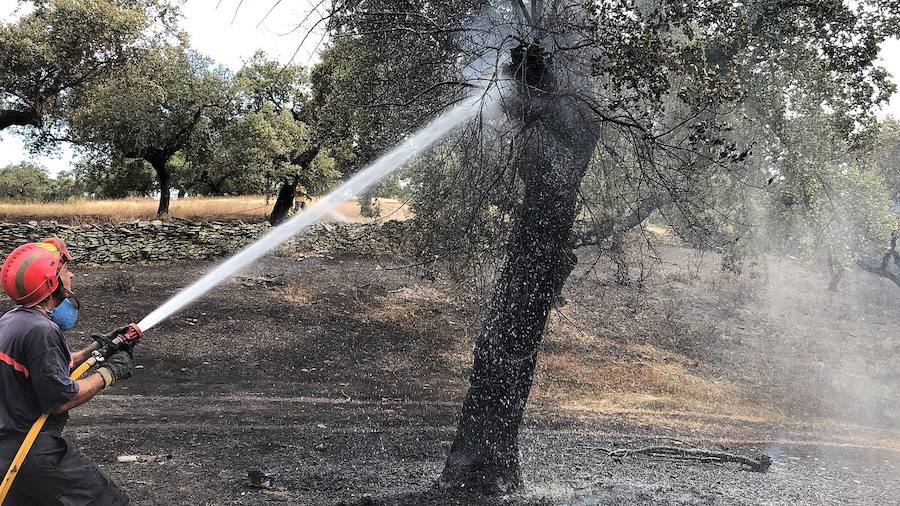 Se han quemado 1'3 hectáreas de la finca conocida como de 'Las Alcañizas', una zona cercana al Cementerio Municipal. Se ha calcinado pasto, encina y abundante albolaga.