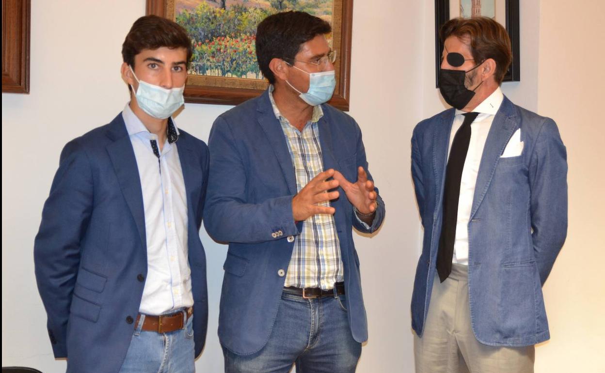 El novillero Manuel Perera y su apoderado Padilla han sido recibidos por el alcalde de la localidad