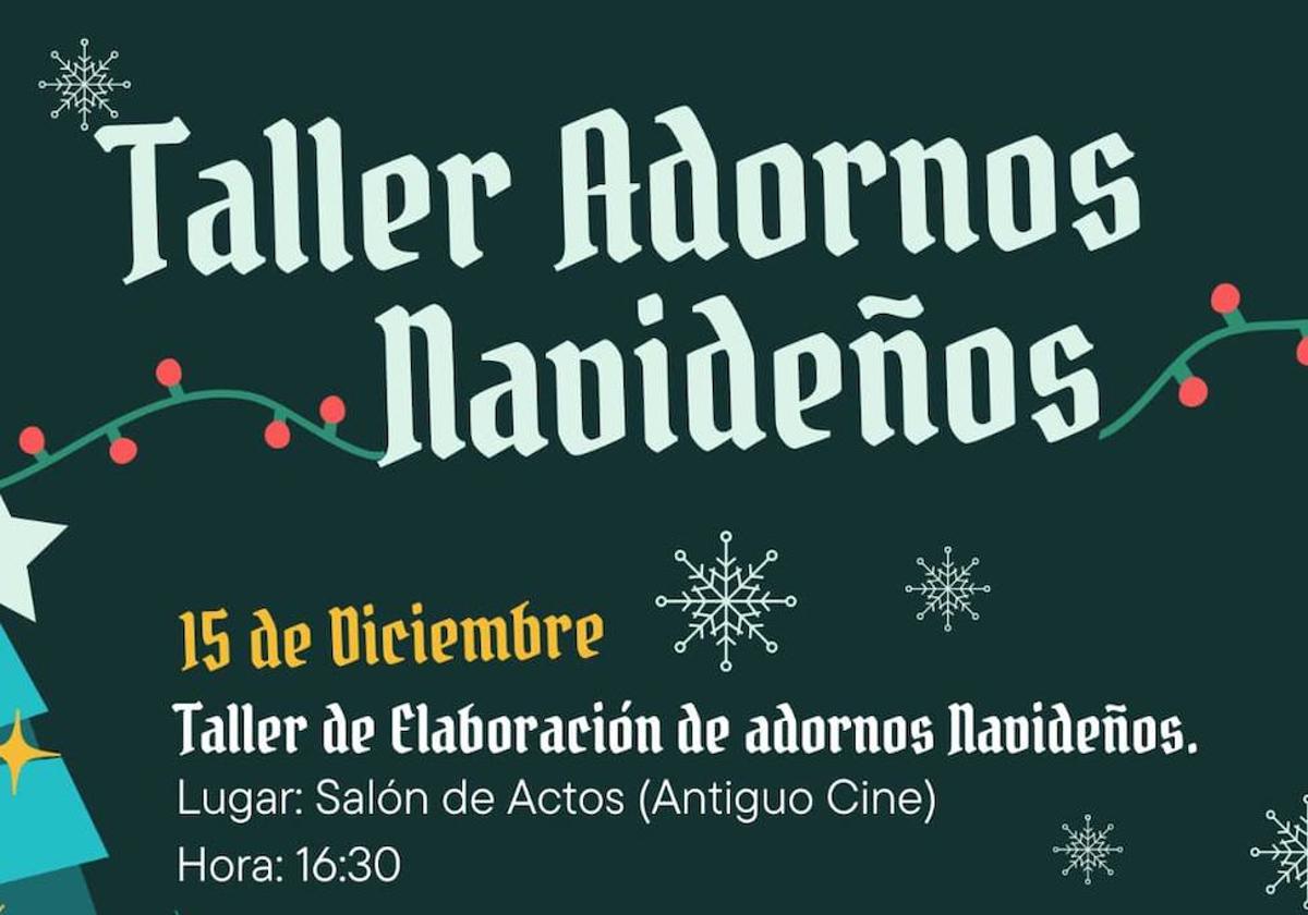 El Ayuntamiento de la localidad organiza dentro de la programación de Navidad, un taller de elaboración de adornos navideños. El mismo tendrá lugar esta tarde de viernes a las 16.30h en el Salón de Actos Municipal.