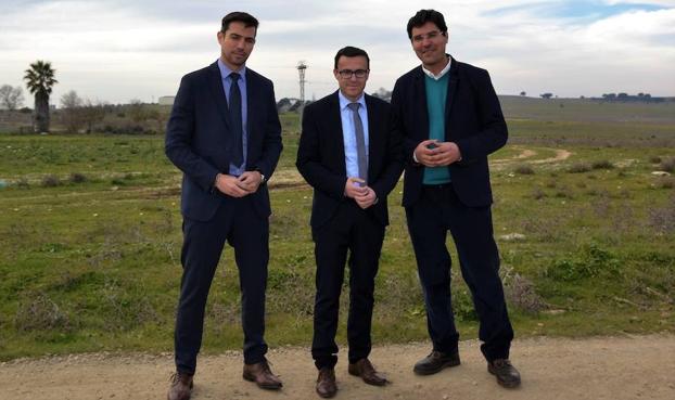 Miguel Ángel Gallardo, ha querido conocer 'in situ' el lugar donde se construirá la balsa de riego de los nuevos regadíos sufragada por la Diputación de Badajoz