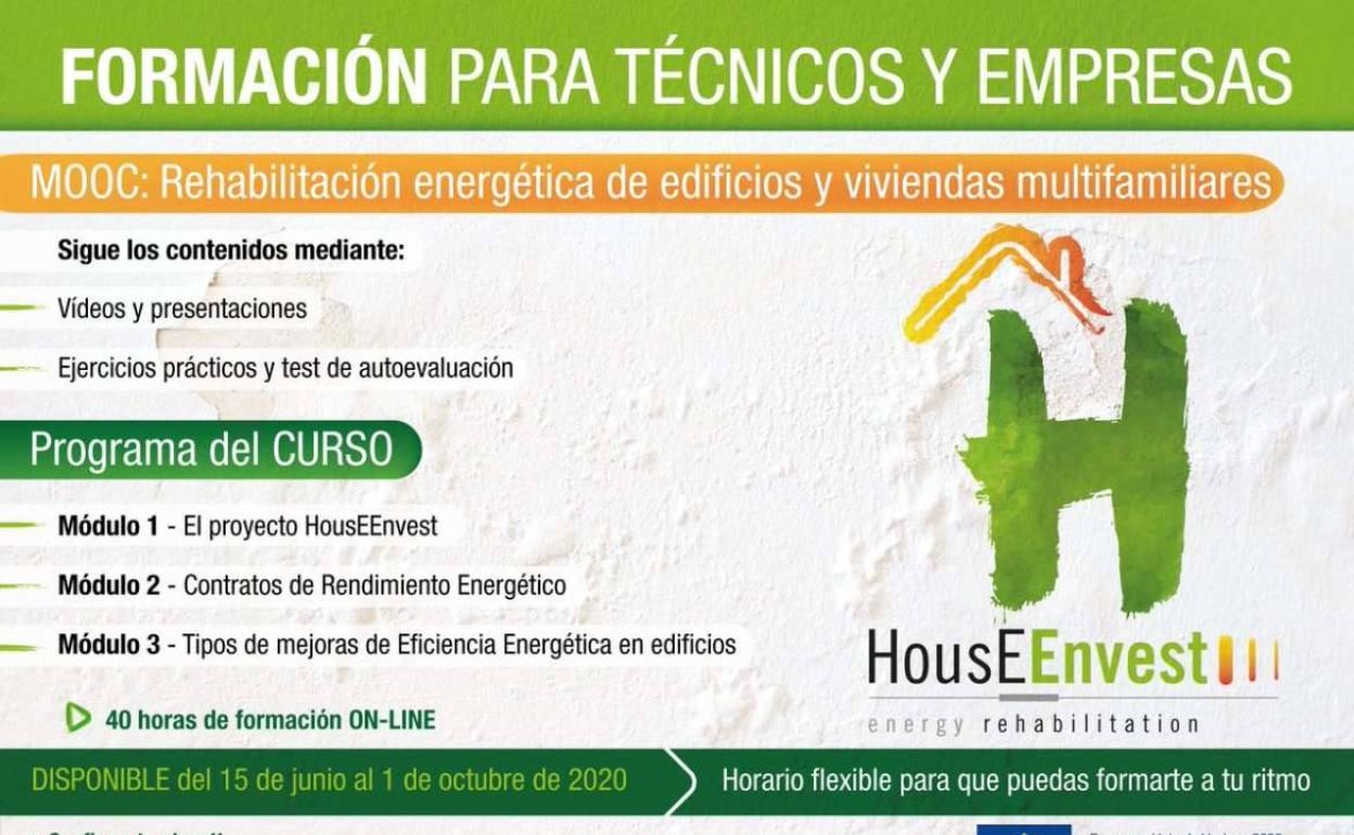 Este MOOC (curso masivo abierto online) contará con 3 módulos formativos: el proyecto HousEEnvest, contratos de rendimiento energético y tipos de mejora de eficiencia energética en edificios.