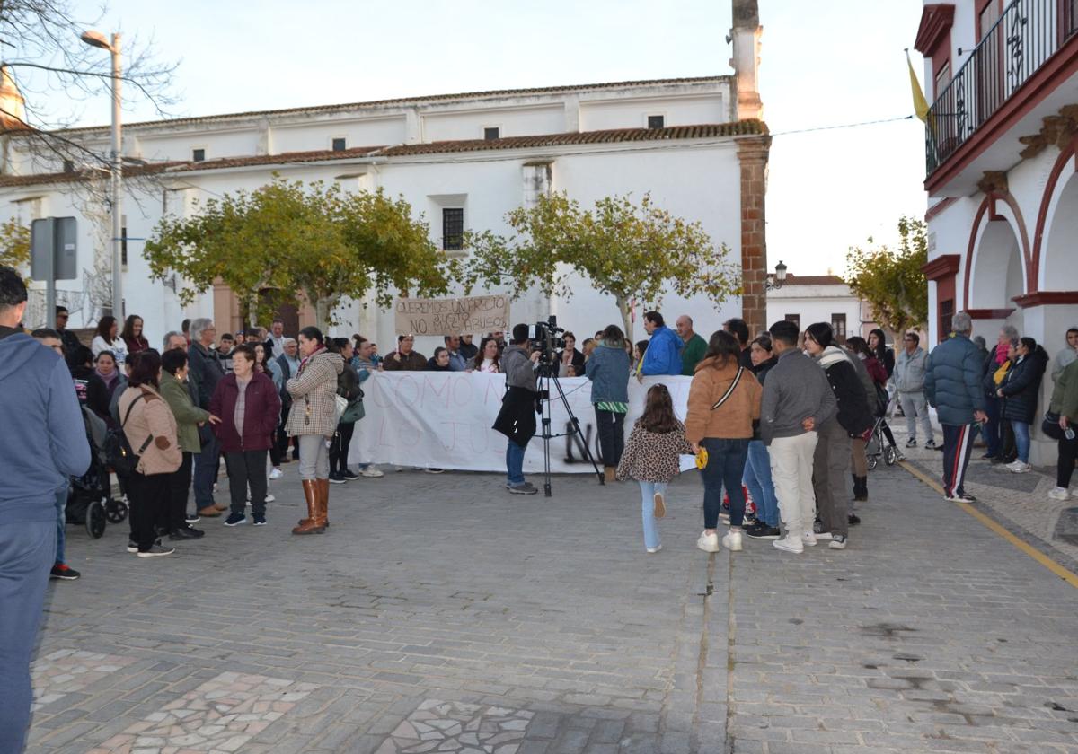 Entre la plaza de España, sus atrios, fachada del Ayuntamiento y en la puerta de varios bares se siguen congregado más de doscientas personas para continuar las protestas por el precio de las acciones de senara.