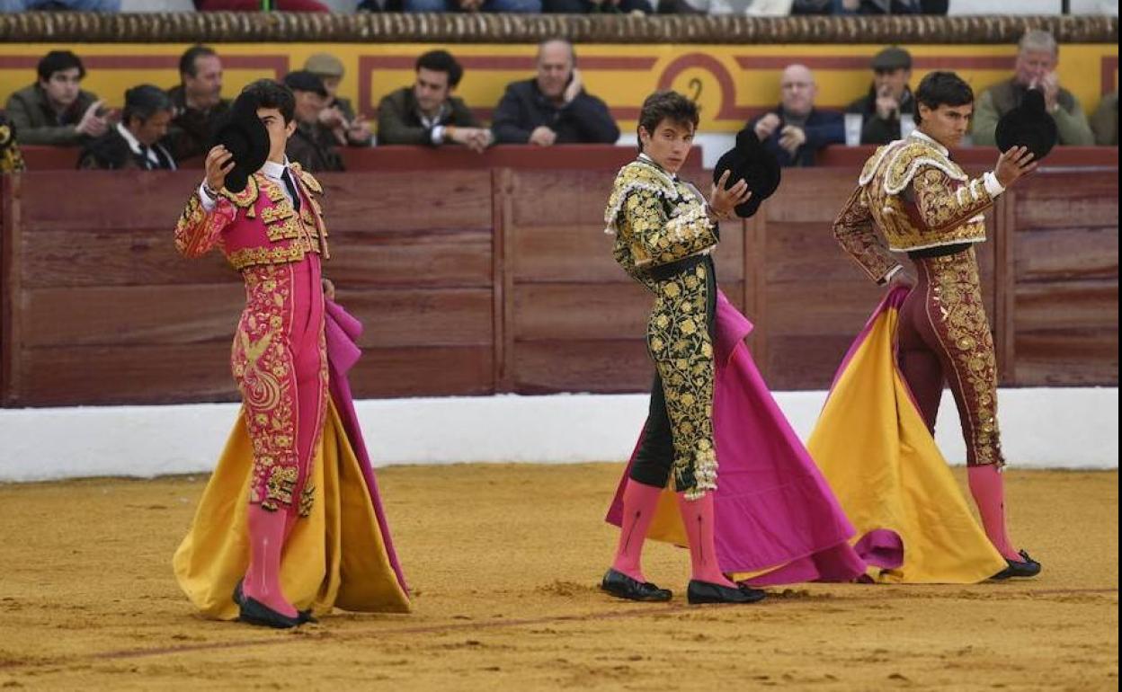 En el festejo también ha estado el novillero pacense Carlos Domínguez. Los tres novilleros han lidiado reses de las ganaderías extremeñas de Juan Albarrán, Carriquiri, Vistalegre, José Luis Marca, Bernardino Píriz y Luis Albarrán.