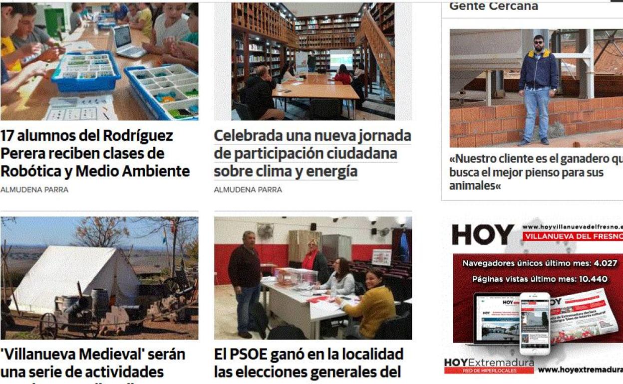 El hiperlocal de Villanueva del Fresno forma parte de la red de 30 periódicos locales que el Diario HOY tiene en la región. Esta red es la más extensa de la Prensa española y constituye una herramienta potentísima de comunicación de contenidos informativos y publicitarios, toda vez que durante septiembre tuvo 237.143 navegadores únicos y visitaron una o varias web de los hiperlocales en 443.183 ocasiones. El resultado de estas visitas se tradujo en 1.032.770 páginas vistas. Esto quiere decir que los usuarios se interesaron más de un millón de veces por sus noticias.